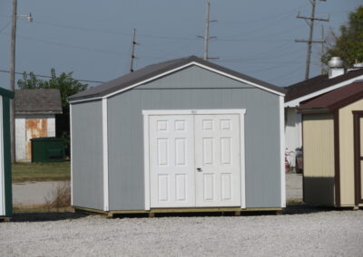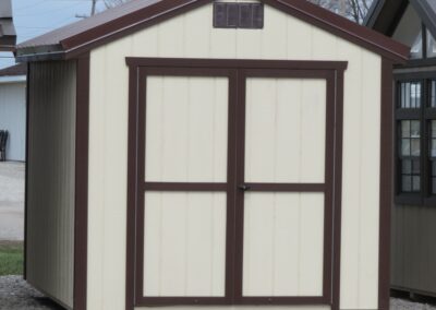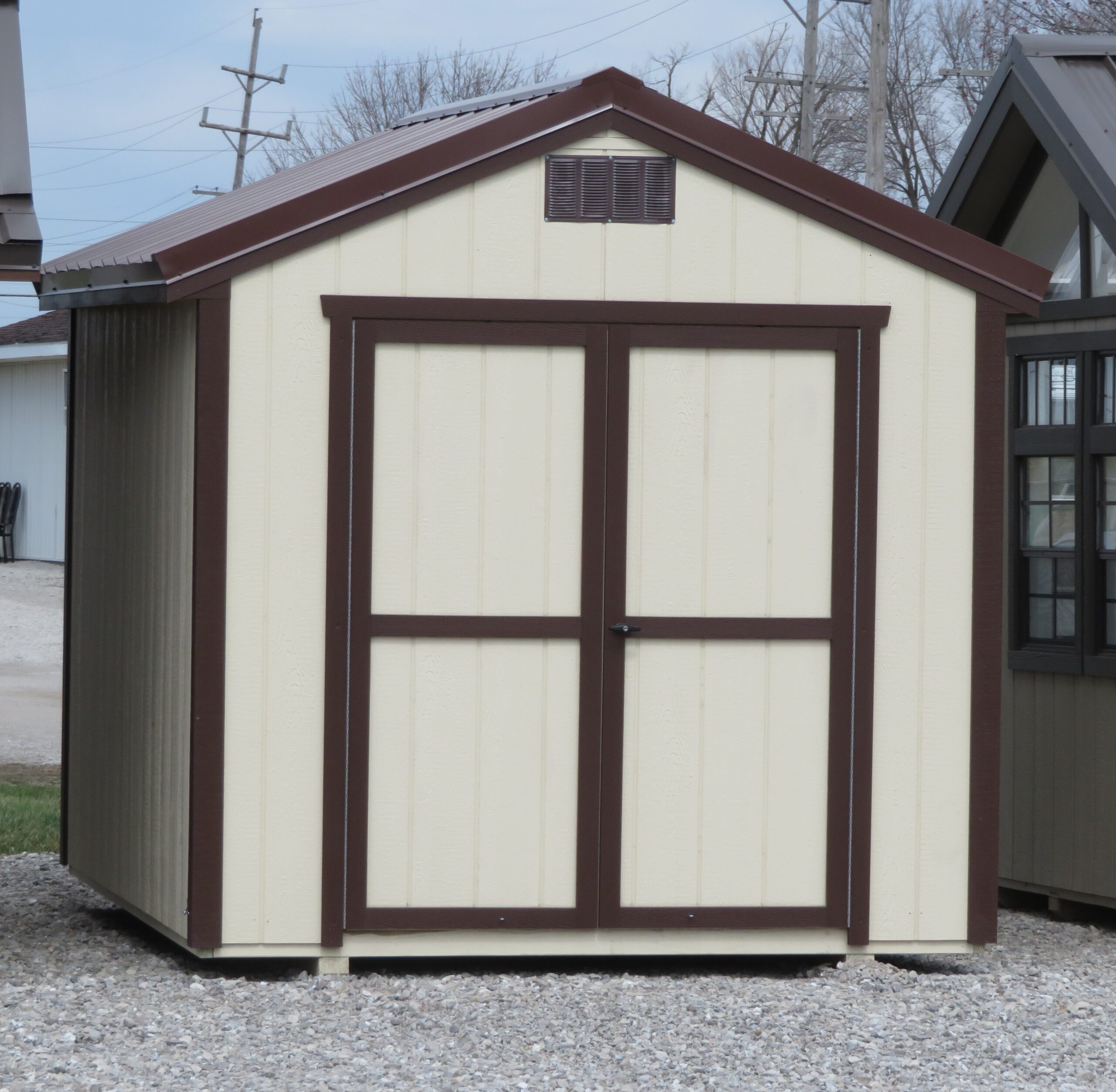 Here is the shed that will give you the garage you never had! Or perhaps you do have a garage but need some extra storage space. The Studio is our most common, basic seller. It has a spacious interior and an option of a large roll-up overhead door on the end. We also give the option of ordering the shed with heavy-duty flooring. These features present many possibilities for the use of your shed. Do you have a boat, an antique car, or a large garden tractor you would like to protect from the weather? Order the shed with a small door and windows on the side, and you have a pleasant place to fix up that small car you have been tinkering with. Not only will the Studio serve these purposes well, but it will also increase the value of your property.